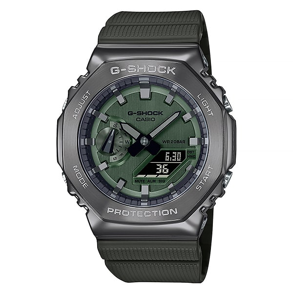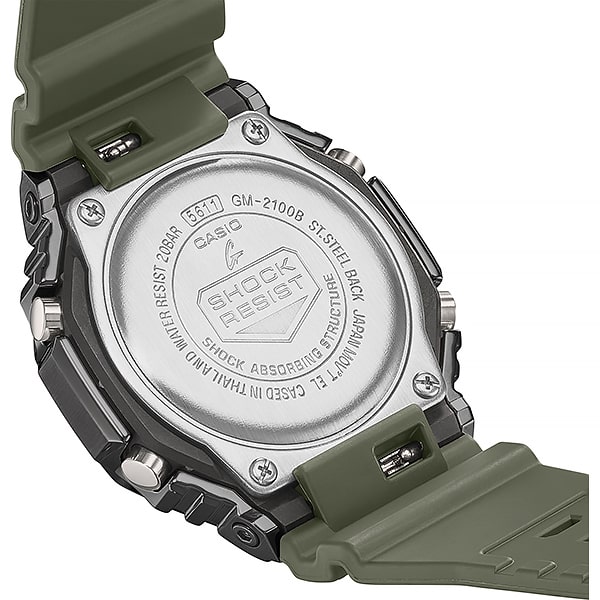Часы Casio GM-2100B-3A — это стильный и надежный аксессуар, который идеально сочетает в себе современный дизайн и функциональность. Эти часы относятся к популярной серии G-Shock, известной своей прочностью и устойчивостью к ударам. Базовый цвет модели – тёмно-зелёный. Корпус изготовлен из высококачественного нержавеющего стали, что обеспечивает долговечность и защиту от коррозии. Характерная восьмиугольная форма придаёт часам уникальный и стильный вид. Чёрный циферблат с яркими акцентами легко читается в любых условиях освещения благодаря встроенной подсветке. Часы оснащены множеством полезных функций, включая отображение времени в 12/24-часовом формате, будильник, таймер и функцию мирового времени. Модель имеет водонепроницаемость до 200 метров, что делает её идеальной для активного отдыха и водных видов спорта. Габаритные размеры корпуса 44,4 х 49,3мм, толщина 11,8мм. Ширина браслета 20мм. Вес изделия 72гПреимущества часов Casio G-Shock GM-2100B-3A:• Прочный и лёгкий корпус, который не сковывает движения. • Устойчивость к ударам и вибрациям.• Универсальный стиль, который легко сочетать с различной одеждой.Часы Casio GM-2100B-3A — это отличный выбор для тех, кто ценит качество, стиль и функциональность. Добавьте их в свою коллекцию и подчеркните свой уникальный стиль! В коллекции есть варианты в серебристом, синем, сером или серо-красном цвете.