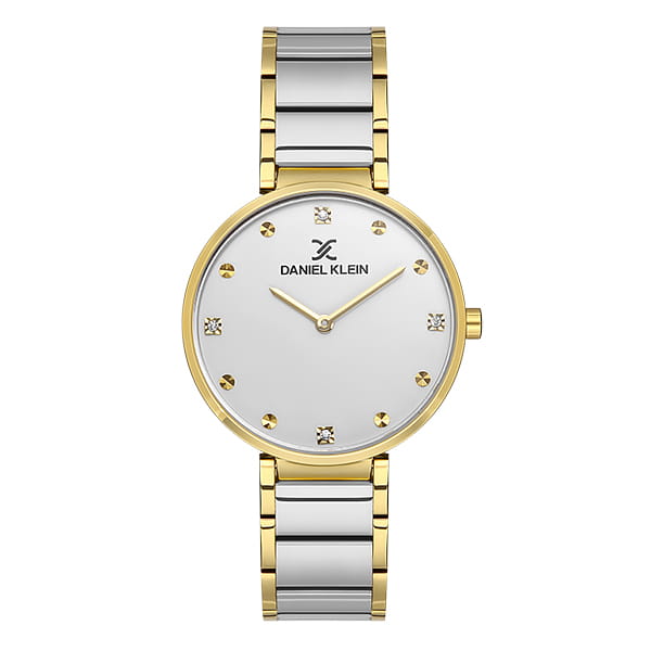 Женские часы Daniel Klein DK13476-2 прекрасный аксессуар для любого случая. Стильный fashion-дизайн, круглая форма и золотистый корпус создают элегантный облик и привлекают внимание. Круглый корпус из сплава гармонично сочетается с хромированным браслетом из нержавеющей стали, а белый циферблат со стразами в местах часовых меток придает часам особый шарм. Водонепроницаемость 30 м позволяет использовать часы в повседневных условиях. Габариты корпуса 35 х 35 х 7мм. Ширина браслета 16мм, длина по объёму – 175мм. Вес – 87г