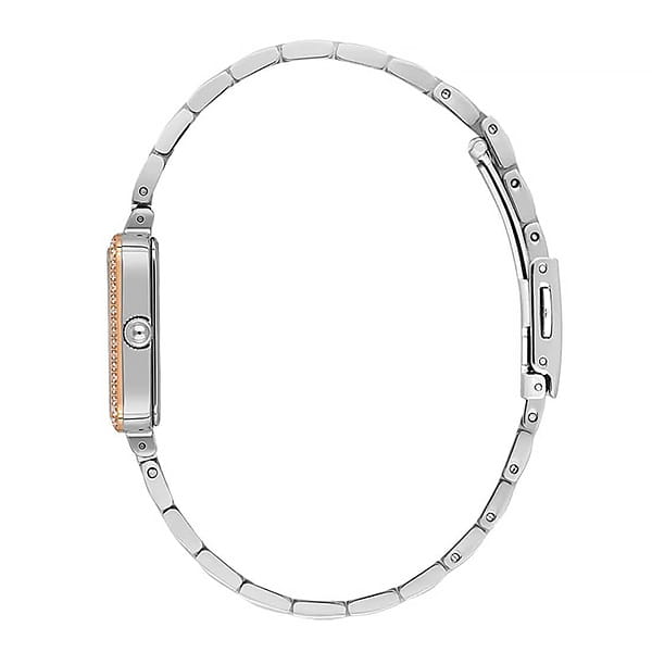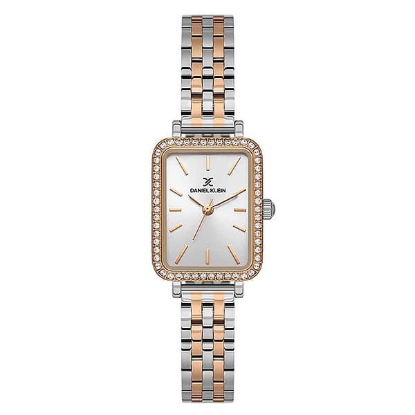 Элегантные женские часики прямоугольной формы турецкого бренда Daniel Klein DK.1.14105-6 оценят поклонницы универсальных аксессуаров. Металлический корпус и стальной браслет с частичным покрытием под цвет розового золота. На серебристом циферблате три центральные стрелки и часовые отметки выполнены также в цвет розового золота. В часах установлен кварцевый механизм Seiko TMI Epson VJ21C1. Удобный стальной браслет с раскладывающейся застежкой. Водозащита – 30м. Габариты корпуса 28 х 21 х 7мм. Ширина браслета 10мм, длина по объёму -175мм. Вес – 58г