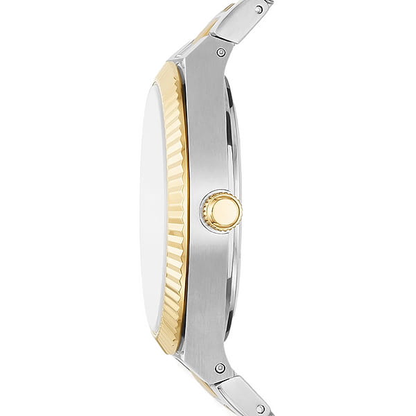 Яркие женские часы Fossil ES5259 (Scarlette) для амбициозных натур. Корпус и браслет сделаны из нержавеющей стали и частично покрыт устойчивым к истиранию IP покрытием под цвет жёлтого золота. Оригинальная насечка, нанесённая по безелю корпуса, придаёт дополнительный блеск и шарм. На серебристом циферблате, выполненном по технологии Sunray (солнечные лучи) расположены метки в виде штрихов и окошко с датой. Браслет с удобной раскладывающейся застёжкой. Диаметр корпуса 38 мм. Элемент питания - SR626SW