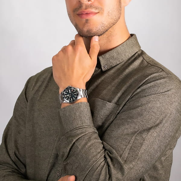 Современные и стильные часы-дайверы Orient Diver Mako AA0004E39B для спортивных мужчин. Эти часы объединили в себе лучшие технические характеристики и безупречное японское качество и потому идеально подойдут как для работы, так и для активного отдыха на природе. Японский механизм калибр F6922 с частотой полуколебаний 21600 в час имеет 22 камня, запас хода 40 часов и возможность ручного завода. Стоит отметить, что ось баланса в этих часах защищена противоударным устройством. Корпус и браслет - нержавеющая сталь. Сапфировое стекло – устойчиво к появлению царапин. Яркие стрелки и часовые отметки со светонакопительными элементами отлично читаются на циферблате красивого тёмного-голубого оттенка. Удобное окошко с днём недели и датой расположено в зоне 3 часов. Безель выполнен в цвет циферблата и вращается в одном направлении. Завинчивающаяся заводная головка. Задняя крышка также завинчивается. Браслет надёжно фиксируется на запястье с помощью раскладывающейся застёжки с кнопками и фиксатором с системой блокировки. Благодаря водонепроницаемости на глубине 200 метров, эти часы отлично подходят для подводного плавания. Габаритные размеры корпуса 41,8 х 46,8мм, высота корпуса 13 мм. Ширина браслета 22 мм.