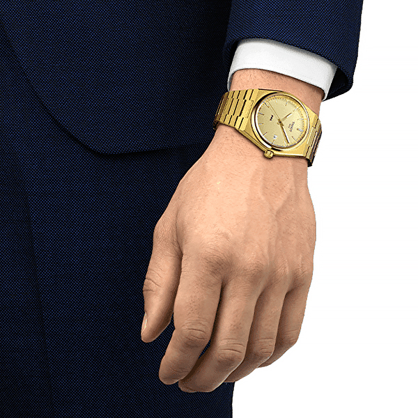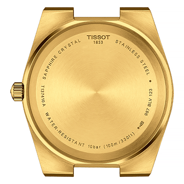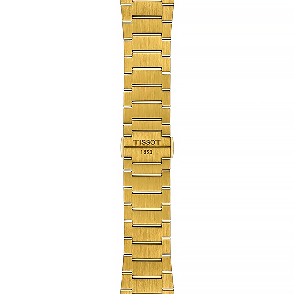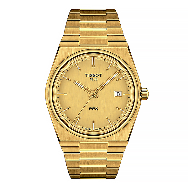 Мужские наручные часы Tissot PRX T137.410.33.021.00 порадуют поклонников ретро-дизайна. Обновлённые Tissot PRX 1978 года – это безусловный аксессуар для самых ярких моментов. Швейцарский кварцевый механизм с индикатором разряда батареи. Корпус и браслет изготовлены из нержавеющей хирургической стали и полностью покрыты под цвет жёлтого золота устойчивым к истиранию PVD способом. Все детали имеют сатинированную поверхность. На прямоугольные стрелки в стиле Baton и накладные часовые метки в виде штрихов нанесено люминесцентное покрытие, которое светится в темноте даже после непродолжительной зарядки на свету. Окошко даты расположено в области трёх часов. Сапфировое стекло с антибликовым покрытием. Надежный стальной браслет с раскладывающейся застежкой и системой быстрой замены. Размер корпуса 40х39,5 мм, высота корпуса 10,4 мм. Вес – 130г